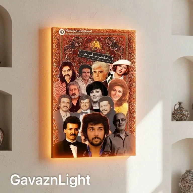 این تابلو بکلایت روایتی گرم، صمیمی و خانوادگی را در دل یک پسزمینه اصیل ایرانی به نمایش میگذارد؛ تصویری گروهی که در میان قاب قالی سنتی با رنگهای غنی قرمز، لاکی و نقشهای اصیل اسلیمی جای گرفته و حالوهوایی نوستالژیک و پرجاذبه ایجاد کرده است. قالیِ پشتصحنه با بافت عمیق و ریزنقش خود نقش یک بستر فرهنگی را بازی میکند؛ بستری که خاطرات، پیوندها و تاریخ عاطفی را در دل خود نگه داشته و اثر را از یک عکس ساده به یک یادمان احساسی و ماندگار تبدیل میکند. نور گرم و کهربایی بکلایت که از پشت تصویر ساطع میشود تابلو را به نقطهای روشن و طلایی در فضا تبدیل کرده؛ نوری که همچون گرمای یک دورهمی خانوادگی بر دیوار مینشیند و لایهای از آرامش و صمیمیت به ترکیب میبخشد. انعکاس این نور روی دیوار گچی روشن و دکور مینیمال اطراف، تضادی دلنشین میان سادگی فضا و غنای بصری تابلو ایجاد کرده و نگاه را بیدرنگ به مرکز صحنه هدایت میکند. ظروف سفالی و المانهای تزئینی سنتی اطراف تصویر نیز هویت ایرانی اثر را کامل کرده و آن را به نقطهای خاص و پراحساس در هر خانه تبدیل میسازد. این تابلو برای کسانی که میخواهند خاطرهای خانوادگی را در قالبی هنری، گرم و ماندگار ثبت کنند انتخابی بینظیر است؛ اثری که تاریخچه یک جمع را در برابر چشمان بیننده زنده نگه میدارد و هر بار با نوری تازه روایت میکند.
