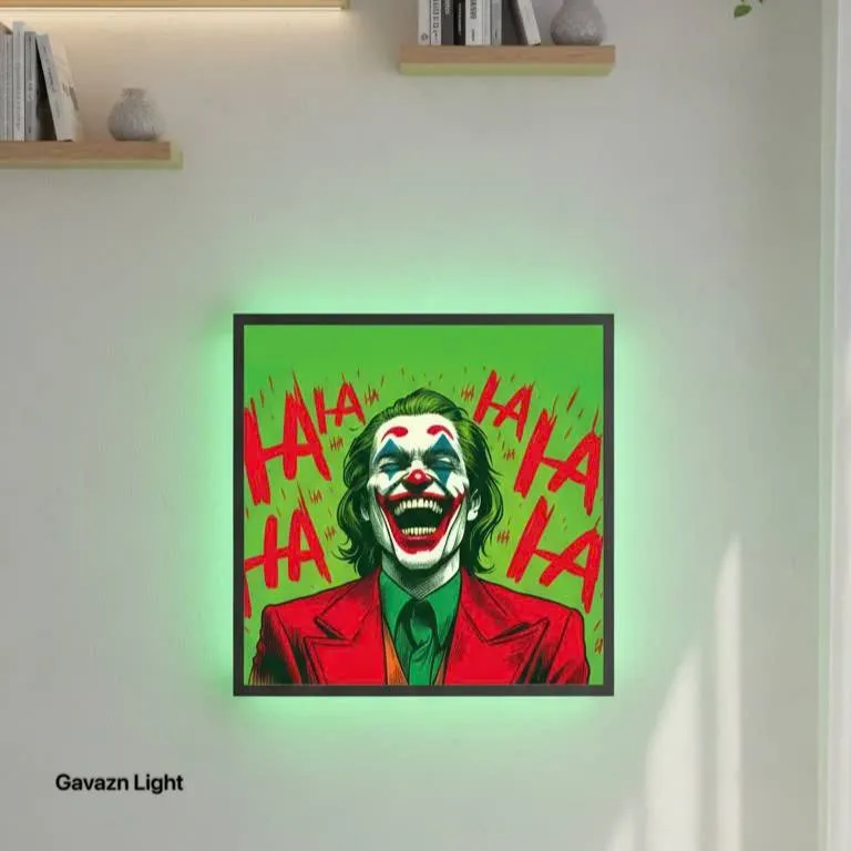 تابلو بک لایت طرح جوکر 2019 فریملس با نور سبز درخشان، برای دوستداران هنر کمیک، سوژههایی با انرژی بالا و علاقهمندان کلکسیون، انتخابی ایدهآل و متفاوت است و با توجه به ساختار و نور شدیدی که دارد، توجهها را به خود جلب میکند.