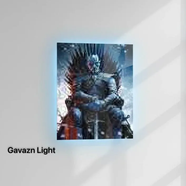 تابلو بک لایت طرح نایت کینگ با نور سرد و ضربهی بصری قدرتمند، دیوار را به بارگاه پادشاه شب تبدیل میکند و برای فضاهای سینمایی یا گیمینگ، جلوهای منحصربهفرد و مسحورکننده میآفریند.