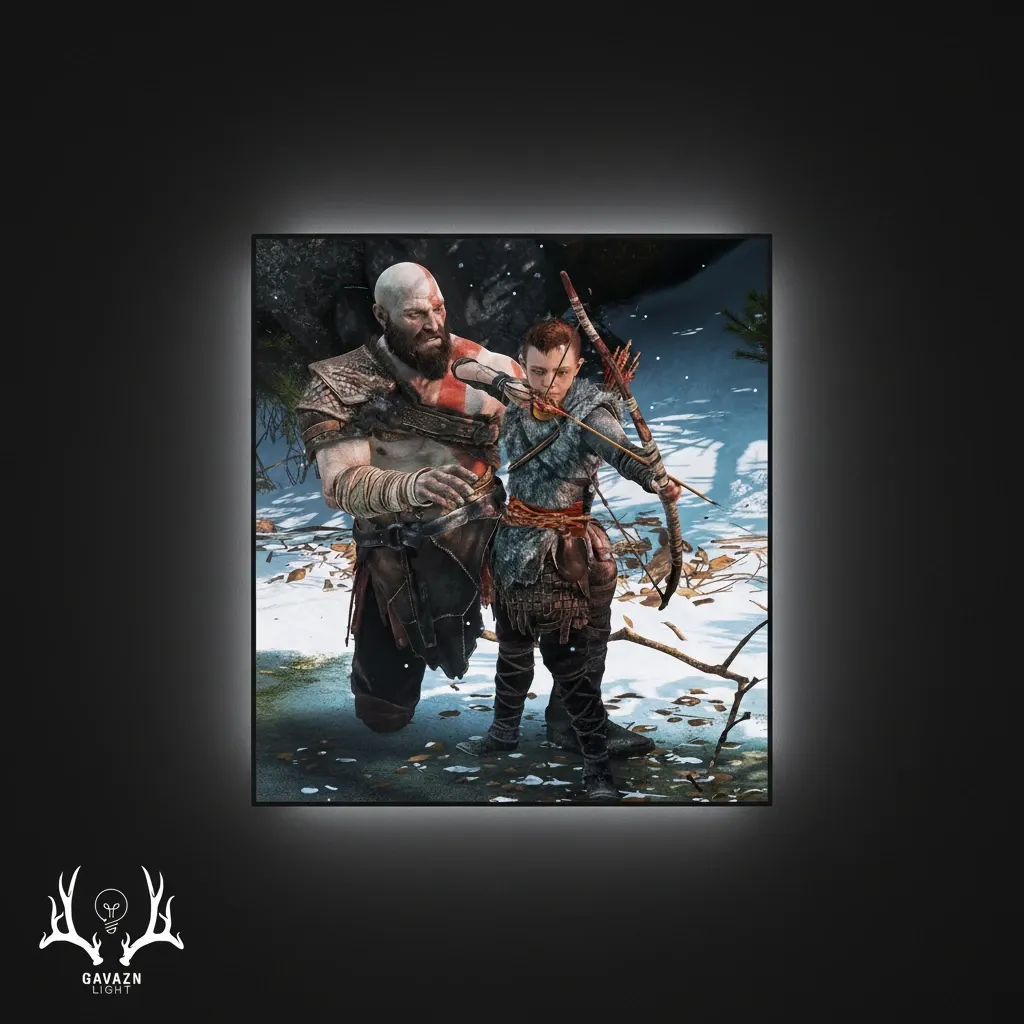 در این صحنه که سرشار از احساس، زمستان و درسهای خاموش زندگی است، پدر و پسر در میان برف و سرمای بیانتها گام برمیدارند. کریتوس، جنگجویی که نبرد و خون را پشت سر گذاشته، در این لحظه دیگر آن خدای خشمگین نیست؛ او محافظی است آرام و محتاط، که با دستی محکم اما پدرانه، مسیر یادگیری را برای فرزندش هموار میکند. اترئوس با چهرهای مصمم و دستانی لرزان از سرما، کمان را بالا گرفته و نگاهش به هدفی دور است؛ همان هدفی که هنوز درک کاملی از معنایش ندارد، اما پدرش میداند که هر تیر باید با درک و صبر رها شود.
