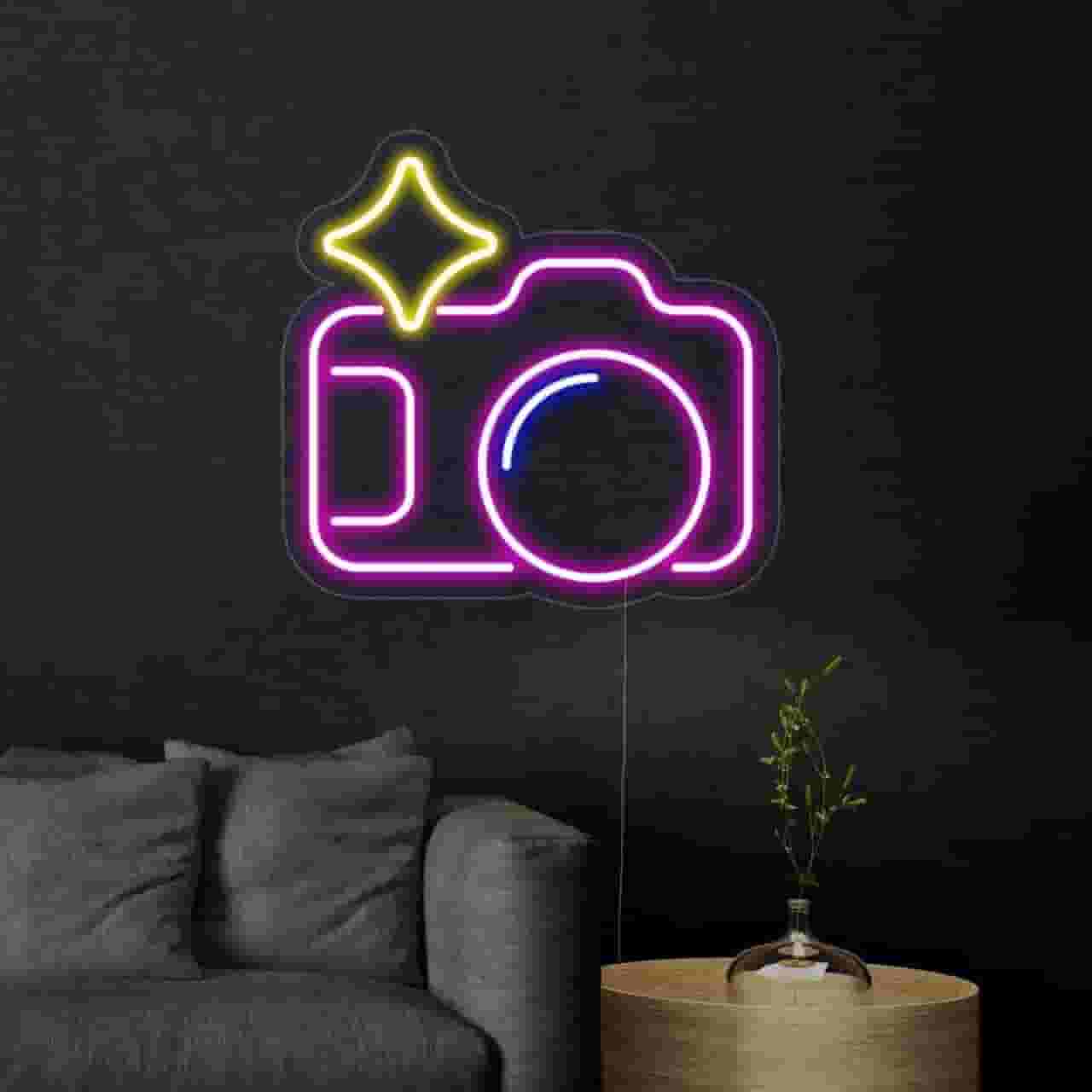3. نورپردازی آرامش‌بخش: تابلو نئون دوربین مینیمال با نور ملایم و جذاب خود، فضای شما را روشن و در عین حال آرامش‌بخش می‌کند.