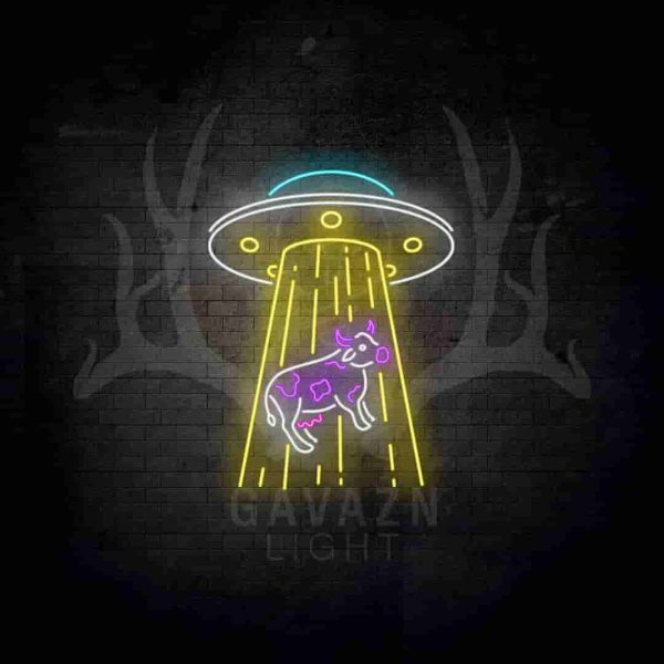 این تابلو نئون با طراحی خاص خود نه تنها فضای شما را به یک دکور جذاب تبدیل میکند، بلکه مفهومی جالب از داستانهای علمی-تخیلی و اسطورههای فضایی را به نمایش میگذارد. تصویری از یک سفینه فضایی که یک گاو را به داخل خود میکشد، میتواند فضای شما را پر از هیجان و خلاقیت کند.