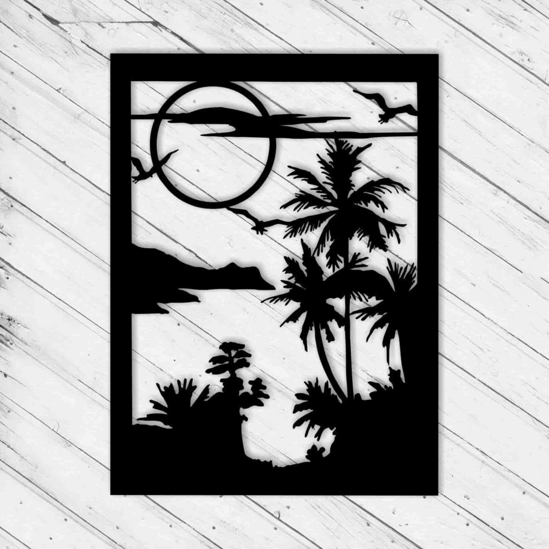 تابلو چوبی مینیمال و چشمنواز است که روح طبیعت گرمسیری را در فضای شما جاری میکند. این تابلوی دیواری، فراتر از یک دکور ساده، یک نقطه فرار بصری به سوی آرامش غروبهای ساحلی است.
