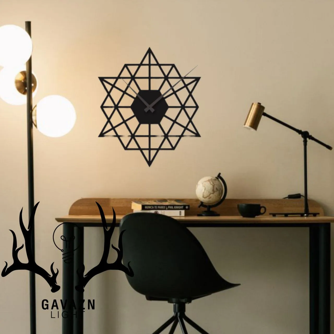 این ساعت دیواری با طراحی هندسی و فرم مشبک خود، جلوهای متفاوت به دیوار میبخشد. ترکیب خطوط منظم و متقارن در اطراف مرکز ساعت، حالتی مدرن و چشمنواز ایجاد کرده که توجه هر بینندهای را جلب میکند. بدنه از جنس چوب با رنگ مشکی مات ساخته شده و همین موضوع باعث میشود علاوه بر دوام بالا، در هماهنگی کامل با انواع دکوراسیون بهویژه سبکهای مدرن و مینیمال قرار گیرد.