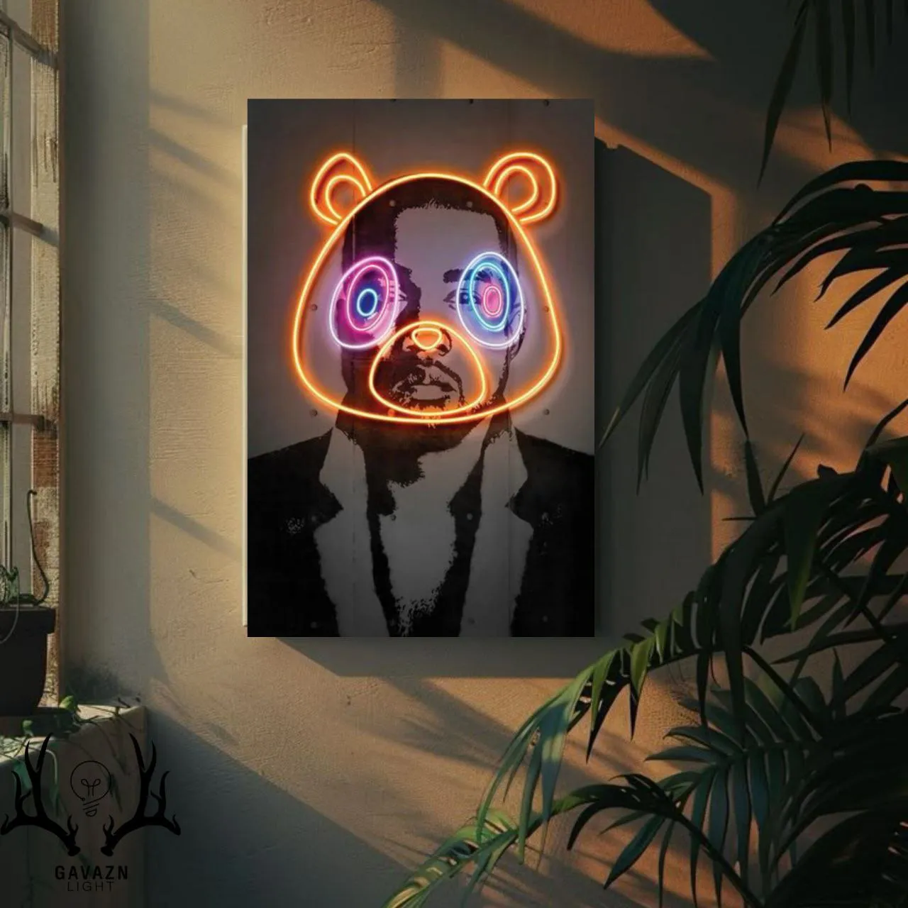 تابلو فتو نئون انتزاعی پاندا با ابعاد ۶۰ در ۴۰ سانتیمتر، انتخابی منحصر به فرد برای علاقهمندان به هنر مدرن، موسیقی و دکوراسیون خاص است. زمینه این تابلو از شاسی با کیفیت بالا ساخته شده است تا دوام و استحکام طولانیمدت آن تضمین شود و جلوهای ماندگار و جذاب به فضای شما ببخشد. طراحی این تابلو ترکیبی از نئون و چاپ با کیفیت بالا است، به طوری که تصویر پاندا با خطوط نئونی به شکل انتزاعی نمایش داده میشود و در کنار آن عکس چاپی یک رپر معروف آمریکایی جلوهای خلاقانه و هیجانانگیز ایجاد میکند.