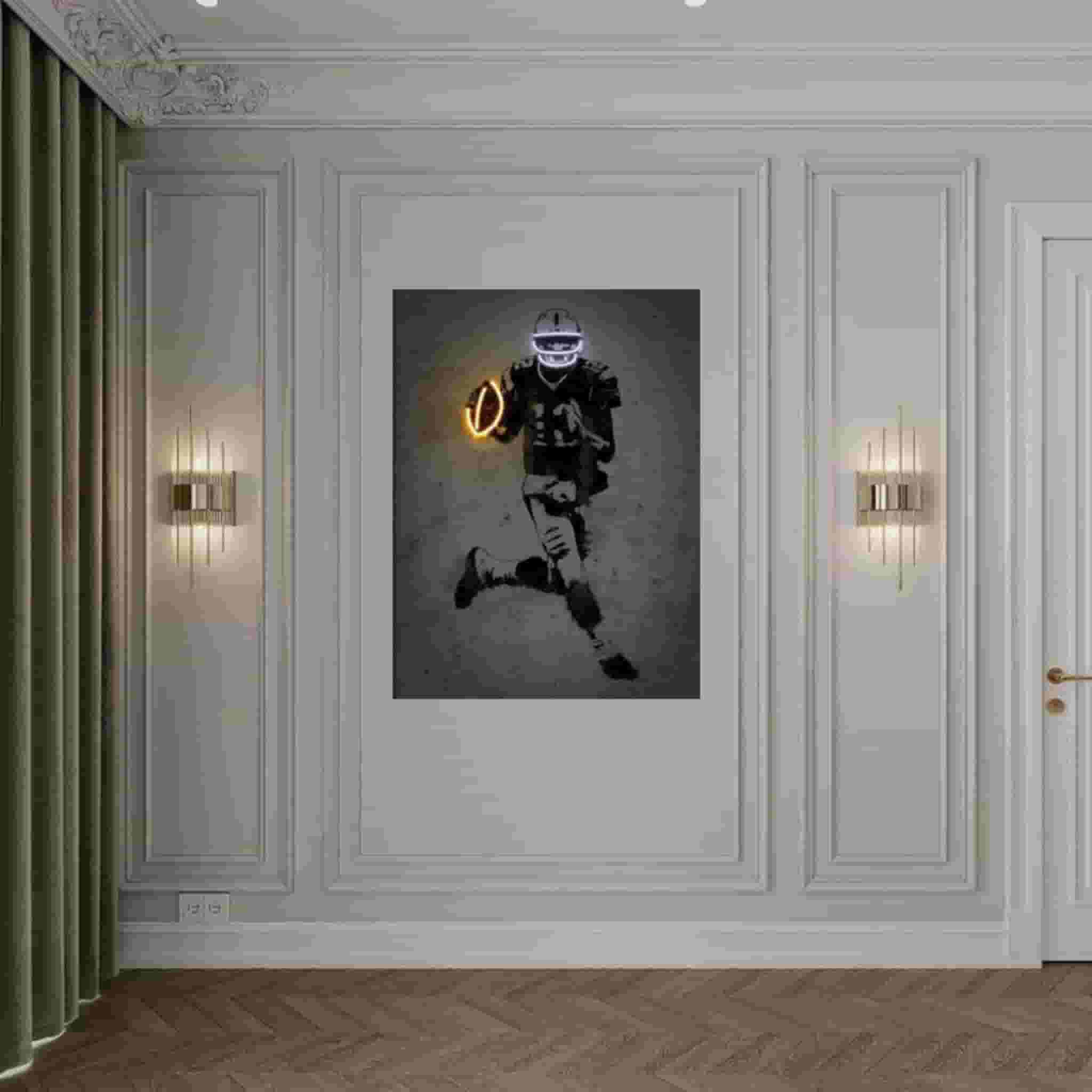ک تابلو فتو نئون اسپرت و جذاب با طرح توپ و بازیکن راگبی که انرژی و هیجان ورزش را به فضای شما میآورد. این فتو نئون با نورهای درخشان و طراحی مدرن، مناسب برای اتاق ورزش، گیمروم، کافههای ورزشی و فضاهای اسپرت است. نصب آسان و طراحی شیک آن، جلوهای متفاوت به محیط شما میبخشد