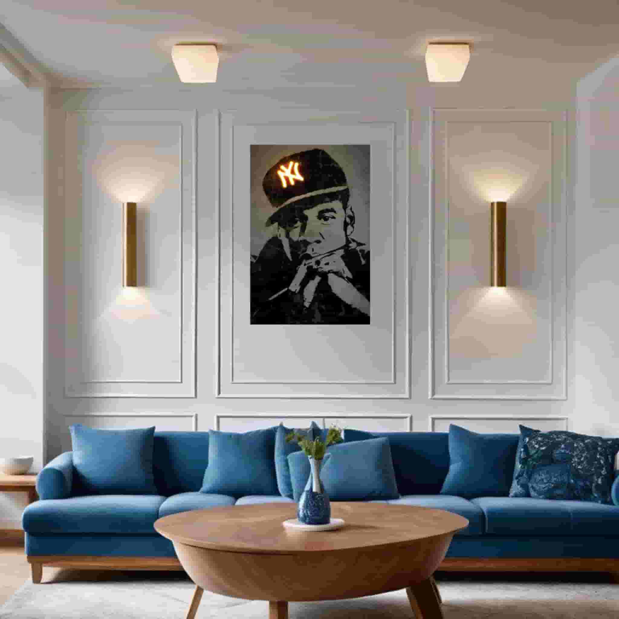 فتو نئون رپر آمریکایی، یک اثر هنری مدرن است که با استفاده از نور نئون، تصویری از یک رپر آمریکایی را به نمایش می‌گذارد. این طراحی با خطوط ساده و نورپردازی ملایم، فضایی شاد و مثبت را به محیط اطراف می‌بخشد.