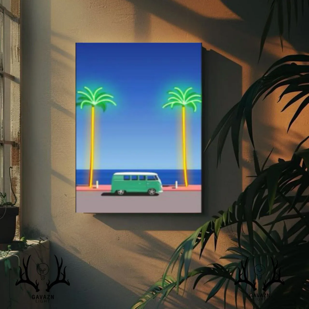 تابلو فتو نئون سواحل شمالی با ابعاد ۶۰ در ۴۰ سانتیمتر، انتخابی ایدهآل برای علاقهمندان به طبیعت، سفر و دکوراسیون مدرن است. زمینه این تابلو از شاسی با کیفیت بالا ساخته شده است تا دوام و استحکام طولانیمدت آن تضمین شود و جلوهای ماندگار و چشمگیر به فضای شما ببخشد. طراحی این تابلو با استفاده از نئون مرغوب انجام شده است، به طوری که روشنایی یکنواخت و رنگهای زنده ایجاد میکند و تصویر دو نخل زیبا در کنار یک خودروی فلوکس واگن کلاسیک، ترکیبی از طبیعت و سبک زندگی آزاد و ماجراجویانه را به نمایش میگذارد.