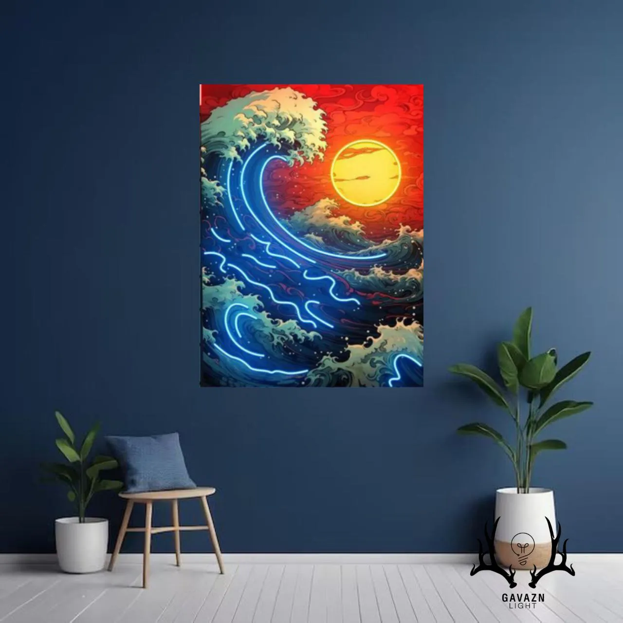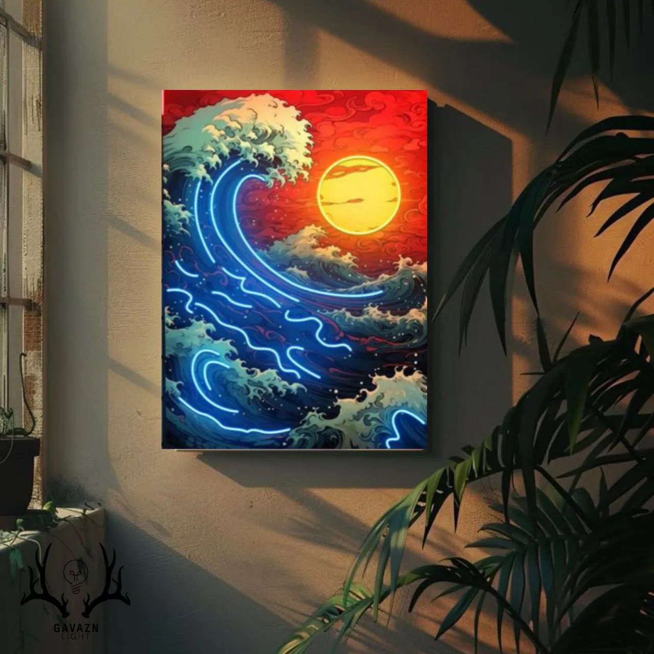 تابلو فتو نئون غروب دریا با ابعاد ۶۰ در ۴۰ سانتیمتر، انتخابی فوقالعاده برای علاقهمندان به طبیعت، آرامش و دکوراسیون مدرن است. زمینه این تابلو از شاسی با کیفیت بالا ساخته شده است تا دوام و استحکام طولانیمدت آن تضمین شود و جلوهای ماندگار و چشمگیر به فضای شما ببخشد. طراحی این تابلو با استفاده از نئون مرغوب انجام شده است، به طوری که روشنایی یکنواخت و رنگهای زنده ایجاد میکند و تصویر موج بلند دریا در کنار خورشید در حال غروب با جزئیات دقیق و جلوهای خیرهکننده به نمایش گذاشته شده است.