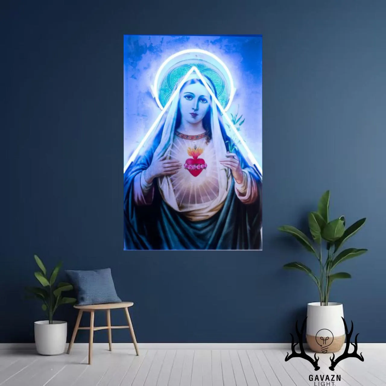 علاوه بر این، ارسال تمام تابلوها به سراسر کشور رایگان است، بنابراین می‌توانید بدون هیچ هزینه اضافی محصول خود را دریافت کنید. تابلو فتو نئون مریم مقدس انتخابی ایده‌آل برای تزئین اتاق خواب، فضای مذهبی، دفتر کار یا هر محیط داخلی دیگری است که به دنبال جلوه‌ای معنوی، آرامش‌بخش و چشم‌گیر هستید. این تابلو نه تنها به محیط زیبایی می‌بخشد، بلکه حس آرامش، معنویت و انرژی مثبت را به فضای شما منتقل می‌کند و تجربه‌ای بصری متفاوت و دلنشین ایجاد می‌کند.