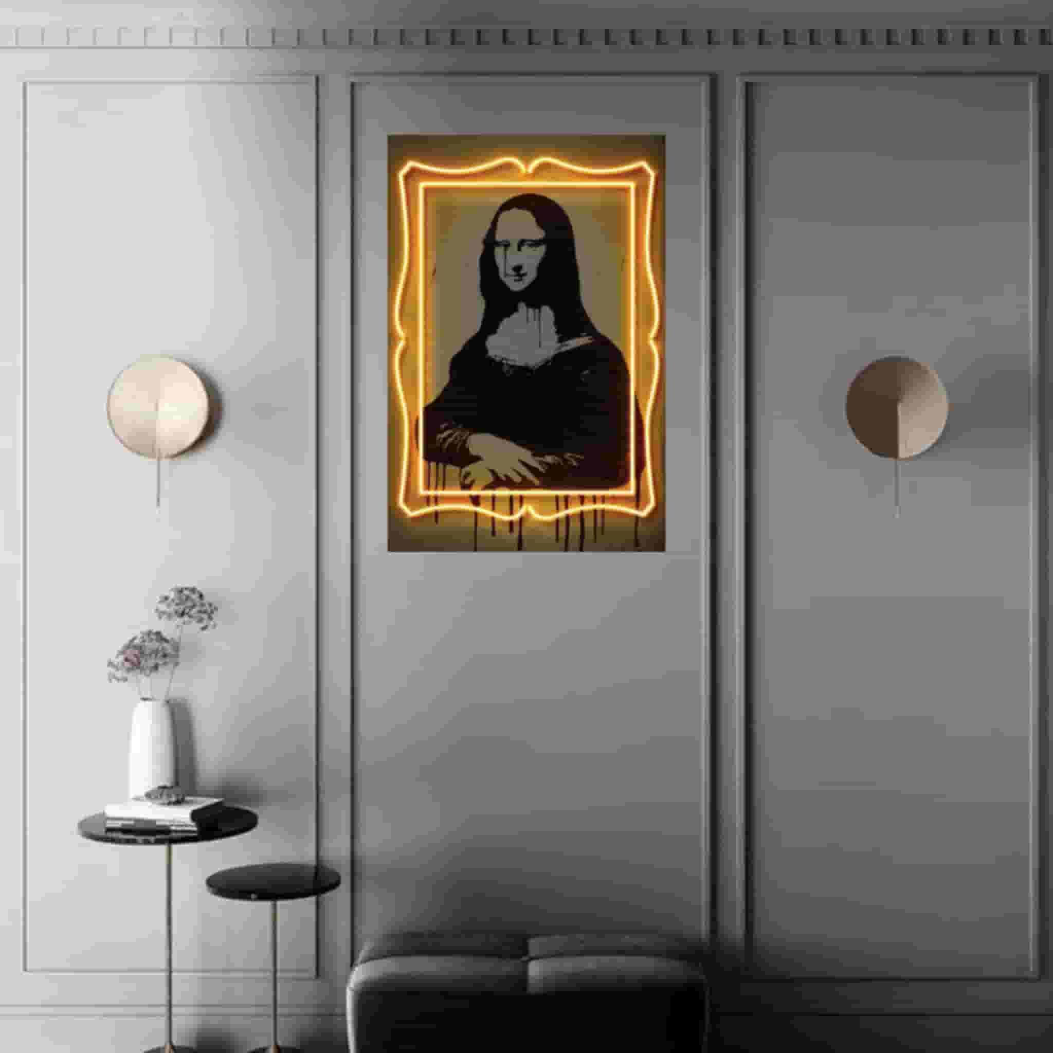 تابلو فتو نئون مونالیزا، تلفیقی هنری از کلاسیک و مدرنیته است که با نورپردازی نئون، تصویری از نقاشی مشهور لئوناردو داوینچی را به نمایش می‌گذارد. این طراحی تابلو فتو نئون با خطوط ساده و نورپردازی ملایم، فضایی هنری و جذاب را به محیط اطراف می‌بخشد.
